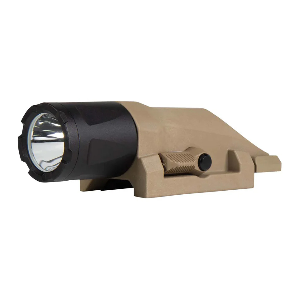 最大400ルーメン/10,000カンデラの高出力を発揮し、約200mの照射距離を確保。連続点灯1.5時間を維持しながら、ショットガンやピストルキャリバーカービンでの近距離用途から、ライフル装着時の中距離射撃まで幅広く対応します。
