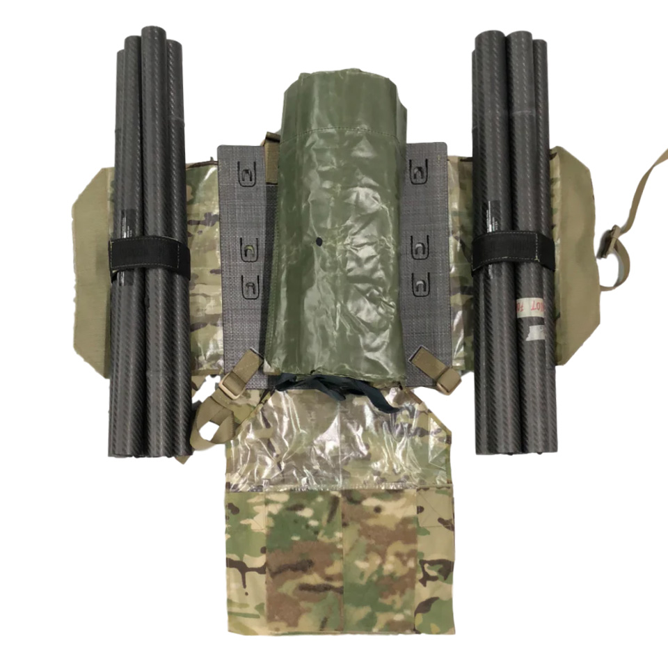 本体には、耐摩耗性と強度に優れ、化学・生物剤を吸収しないMATBOCK社のGhost Heavy素材を採用。ケブラー製のウェビングと糸のみで構成されており、腐食の心配がなく完全除染が可能です。