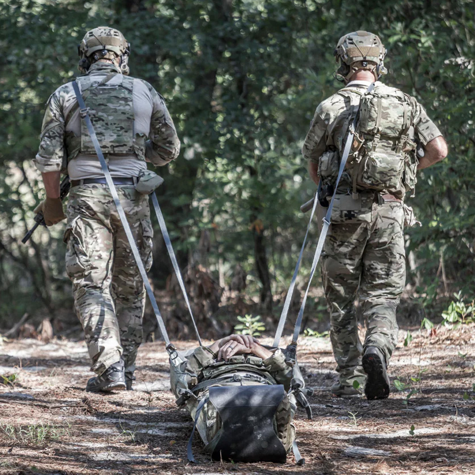 軽量のコンバットカーボンファイバーポールを追加すれば、2人で担架を運ぶこともできます。